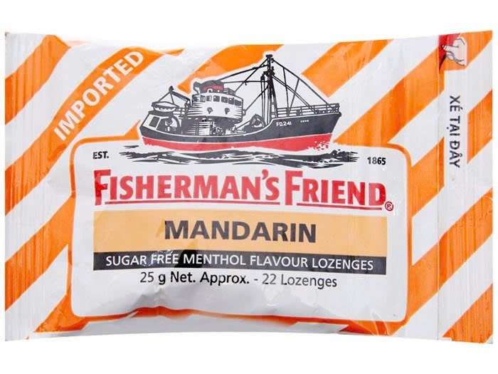 Kẹo cay con tàu quýt gừng- fisherman's friend mandari ( gói/25gr)