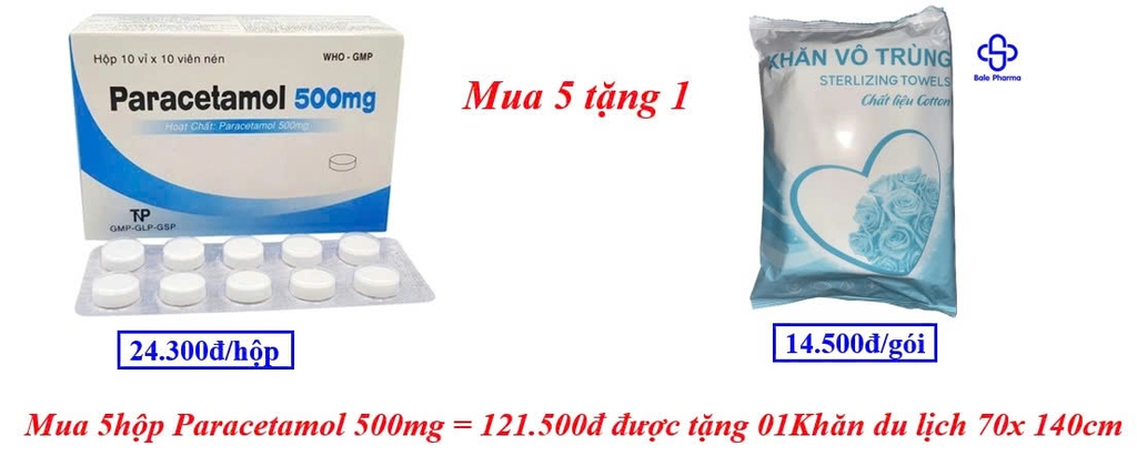 Mua 5hộp paracetamol 500mg = 121.500đ được tặng 01khăn du lịch 70x 140cm