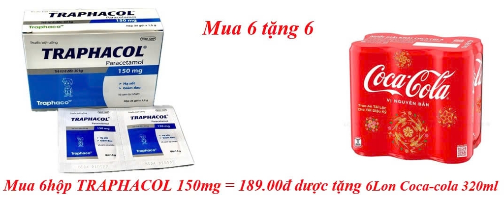 Mua 6hộp traphacol 150mg = 189.00đ dược tặng 6lon coca-cola 320ml